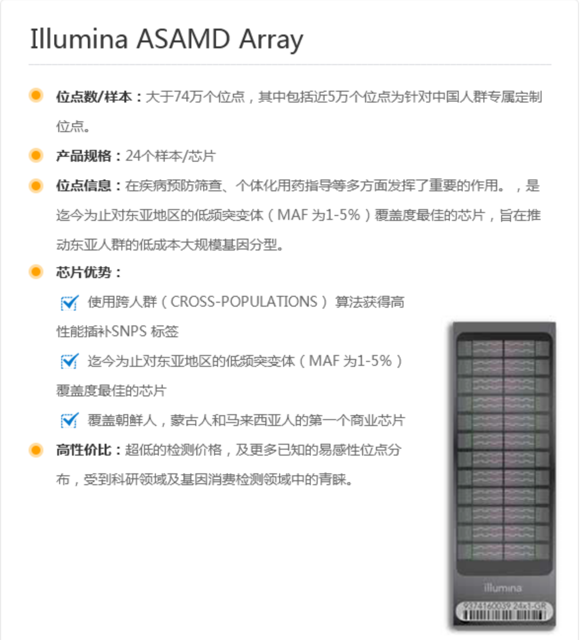 博淼生物基于Illumina公司iScan系統,自2009年以來一直致力于GWAS芯片檢測服務,是國內該領域最早的技術服務商之一,隸屬于公司的核心品牌服務,積累了極其豐富的經驗,覆蓋前沿的方案設計理念、精細的檢測技術、完善的數據分析。提供的檢測數據更是發表在Nature Genetics、AJHG、Human Molecular Genetics等代表雜志。