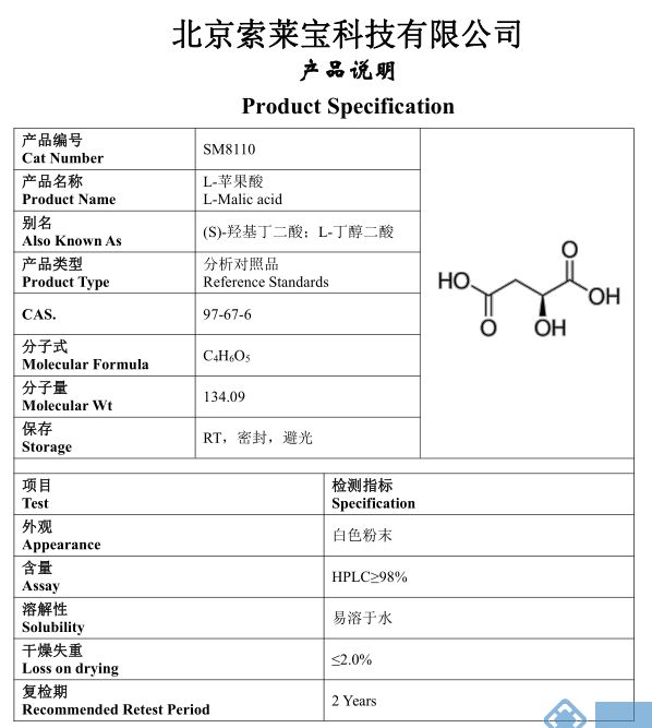 產(chǎn)品名稱: L-蘋果酸標(biāo)準(zhǔn)品