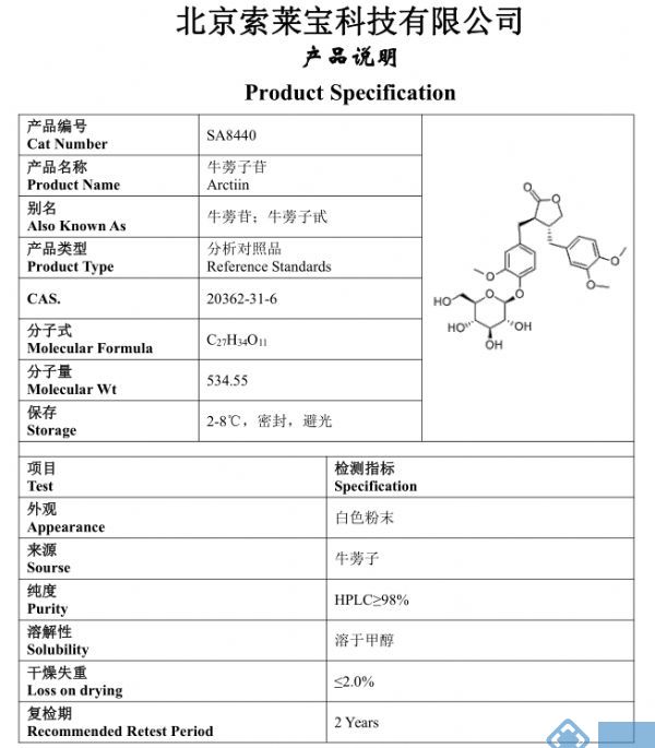 產品名稱: Arctiin;牛蒡子苷/牛蒡苷